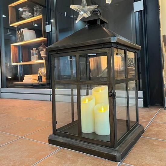 大人気の外でも使用できるアスプルンドオリジナルのランタン。サイズが大きいので玄関やエントランス、テラスで存在感を放ちます。中にキャンドルが入れば暖かい光が漏れて雰囲気が仕上がります。