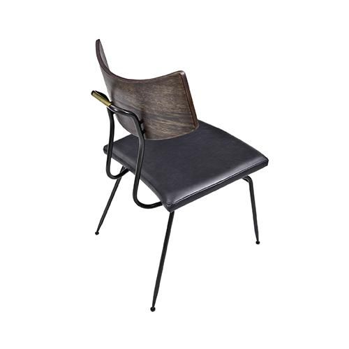 背面に付いているブラス色のハンドルは、チェアを引く際の実用性とあわせ、デザインのアクセントにもなっています。 シャープな印象ですが、座面が広めな作りなのでダイニングシーンでもゆったりくつろげるチェアです。