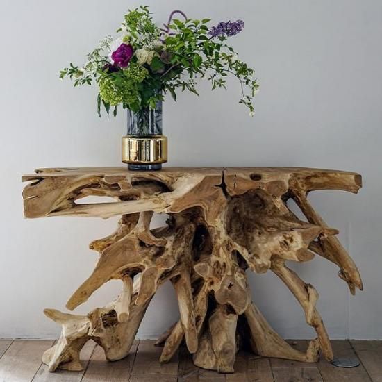 チーク材の木の根、そのままの形を活かしているため自然の流線型が美しく、世界に2つとして同じものはない美術品のような一品を楽しんでいただけます。チーク材の優しい色味で不思議と荒々しさを感じさせず、様々なインテリアにも美しく溶け込みます。