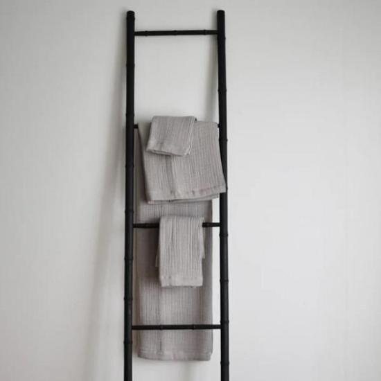 天然チーク古材をアップサイクルして作られたラダー型のモチーフハンガー。 そのまま壁に立てかけるだけでも絵になるデザインで、竹材をモチーフにしたディテールが盛り込まれています。
