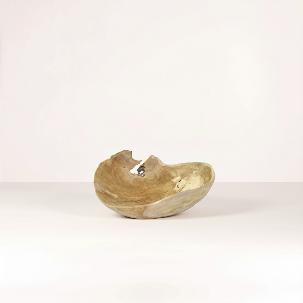 天然チーク材の質感を活かしたデコレーションプレート。同じものが2つとないユニークで歪な形が特徴で、見るたびに愛情が湧く一品です。自然の風合いを楽しみながら、インテリアとしてもお楽しみいただけます。