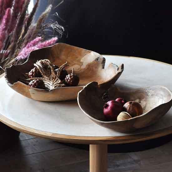 天然チーク材の質感を活かしたデコレーションプレート。同じものが2つとないユニークで歪な形が特徴で、見るたびに愛情が湧く一品です。自然の風合いを楽しみながら、インテリアとしてもお楽しみいただけます。