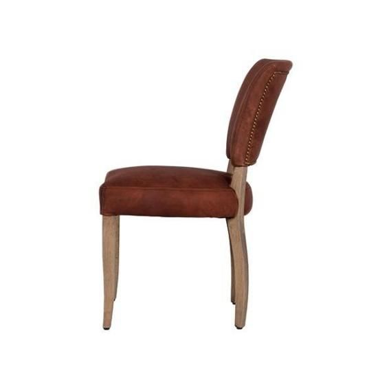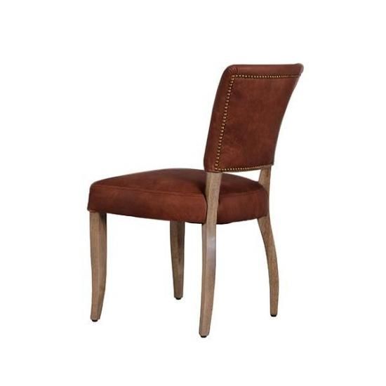 重厚感ある佇まいでダイニングシーンのみならず、デスクやリビングルームにもお使い頂けます。深みのあるレザーの色や程よい艶とシワ、背面に施された鋲などがクラッシックで格式高い形。どこから見ても絵になるダイニングチェアです。