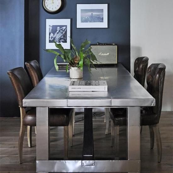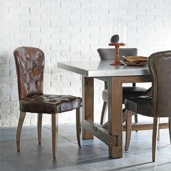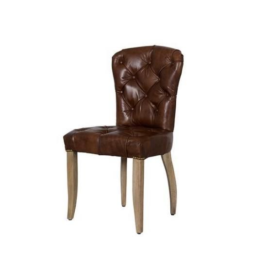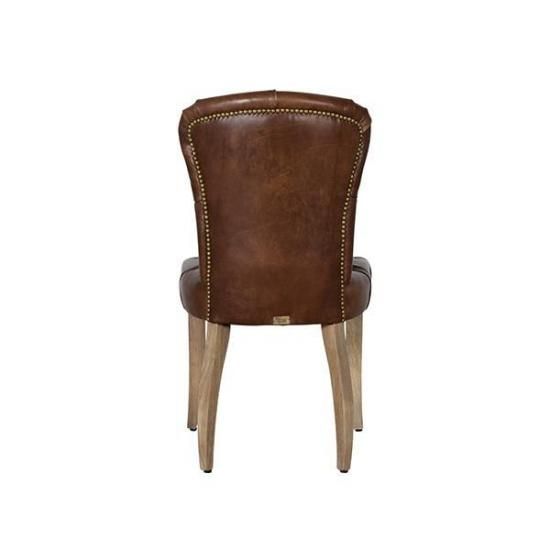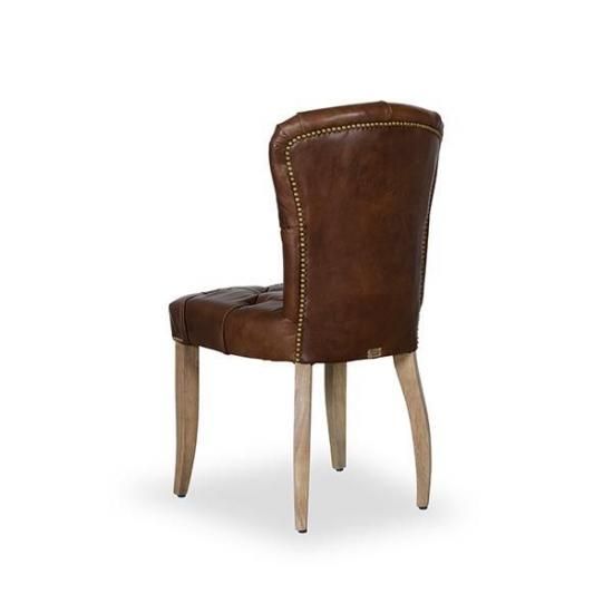 重厚感ある佇まいでダイニングシーンのみならず、デスクやリビングルームにもお使い頂けます。深みのあるレザーの色や程よい艶とシワ、背面に施された鋲などがクラッシックで格式高い形。どこから見ても絵になるダイニングチェアです。