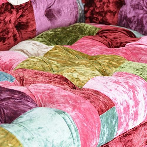 ヴィンテージ風のベルベッドパッチワークが印象的なBENSINGTONシリーズ。ベルベット素材をパッチワークして作られたこのソファは、色や柄の出方が製品によって全て異なり、世界に一つとして同じものがないスペシャルな一点ものです。