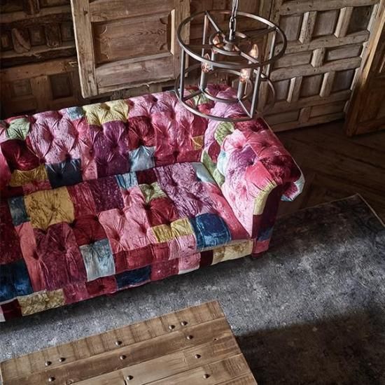 ヴィンテージ風のベルベッドパッチワークが印象的なBENSINGTONシリーズ。ベルベット素材をパッチワークして作られたこのソファは、色や柄の出方が製品によって全て異なり、世界に一つとして同じものがないスペシャルな一点ものです。