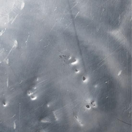 鏡面仕上げのアルミにはあえて手を加え、経年変化による使い込まれたヴィンテージ感を演出しています。新品時の顔が映るほどの輝きから、使っていくことで徐々に白っぽく変化し、深みのある表情を加えています。