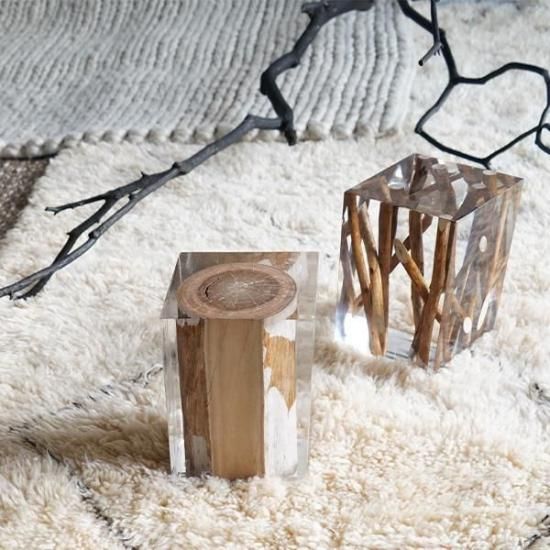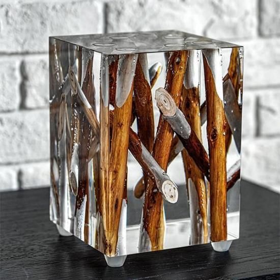 永久に停止した時間の中で、光と戯れながら浮遊するドリフトウッド。卓上でその美しさを楽しめるオブジェです。アクリルの中に浮かべられたのは本物の流木。優れた透明性を持つアクリルを使用することで、透き通るような美しさを実現し、自然のマテリアルをモダンインテリアへ作り変えるブルーナチュールの世界観が表現されています。流木の形状や数、色味等は一点一点異なり、ひとつとして同じものはない美術品のようなプロダクトです。