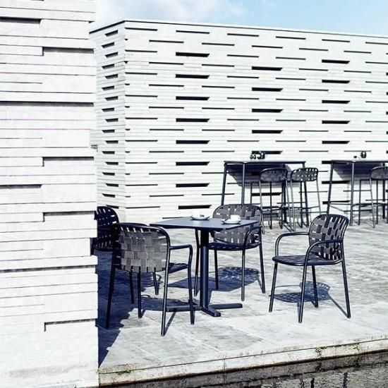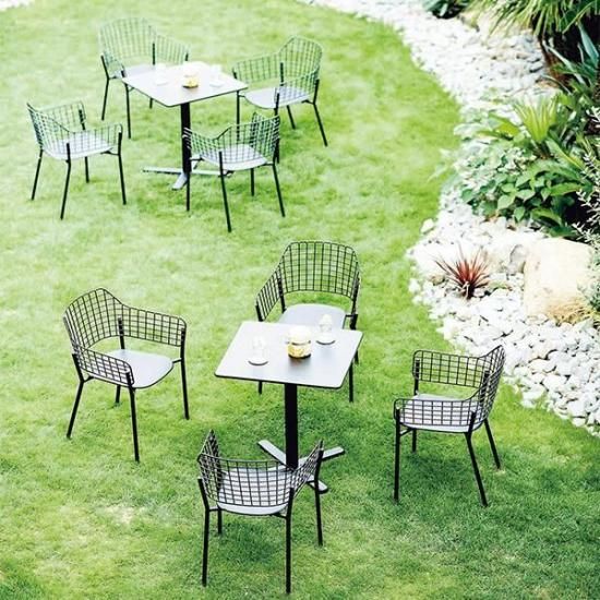 スチールのマットな質感が特徴のスクエアテーブル。 屋外使用が可能なので、テラスやバルコニーではもちろん、リビングやオフィスなど多様なシーンで活躍します。 また、天板は折り畳みができるため、使わない時にはコンパクトに収納でき、スペースを有効に活用できます。 日常の空間をより便利に、そしておしゃれに演出してくれます。