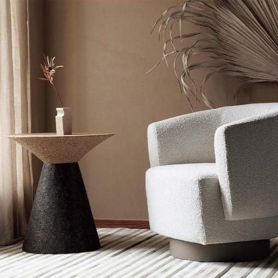 農業廃材(小枝や樹皮)を再製したサステナブル素材のサイドテーブル。マーブルの石の様にも、木材の様にも見える、不思議な温かみのあるデザインがお部屋にアクセントを与えます。 同シリーズのコーヒーテーブルやスツールと組み合わせてお使いいただけます。