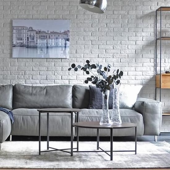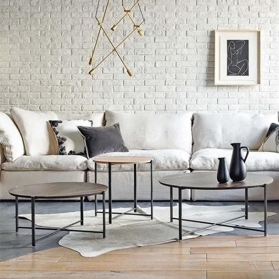 細身のスチール脚が魅力的。サイズ・型違いの同シリーズと、高さに変化を付けて組み合わせても素敵です。