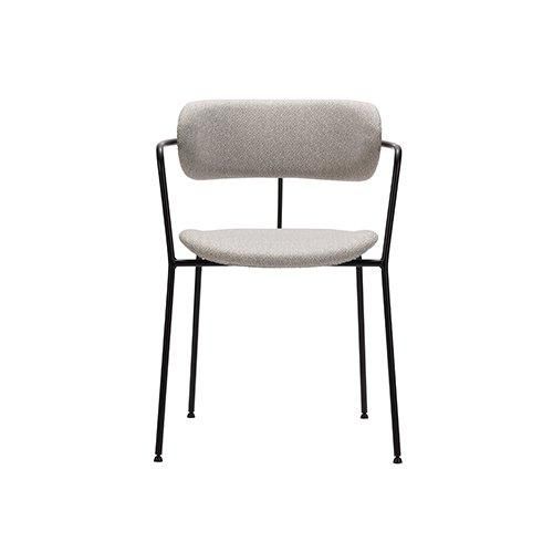 スリムなブラックの脚が魅力的なオフィスチェアです。 前脚からアーム部分までが流れるようにひとつのパイプで構成された、スタイリッシュなデザイン。柔らかなカーブを描く背もたれが、身体を包み込むようにサポートし、快適な座り心地を実現します。