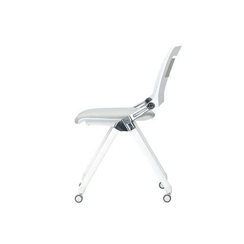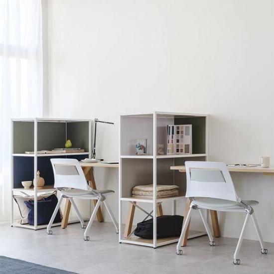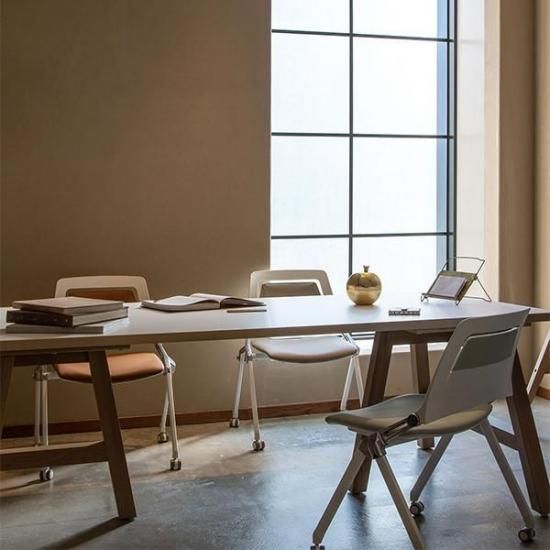 柔らかなアースカラーが特徴なワークチェア。 座面と背もたれ部分に使用しているPUレザーは弾力があり、撥水性に優れているのでメンテナンスのしやすさもポイントです。 使わないときは重ねて整理できるので、ミーティングルームなど限られたスペースで使用するのにもおすすめです。