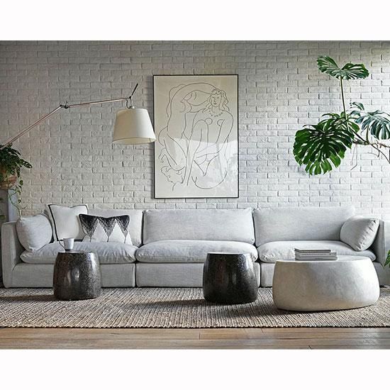 圧倒的なスケールを誇る存在感と上質な印象は、誰しもを魅了し、ラグジュアリーな空間を演出します。しっかりと織り込まれた厚手で肌触りの良い自然素材のファブリックと、たっぷりのフェザーを混入した柔らかなクッション材が、そこに座る人をゆったりと優しく包みこみ、安らぎの世界へといざないます。