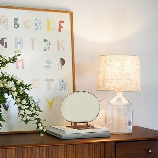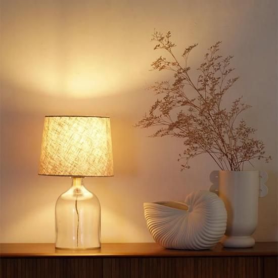 ガラスベースにシンプルなファブリックシェードを合わせた、上品なテーブルランプです。シェードから透ける明かりだけでなく、シェードの上下からこぼれる光が壁に陰影をつくり出し、空間に奥行を感じさせます。寝室やリビング、エントランスなど様々なシーンに合わせていただけるデザインです。 さらっと麻のシャツを羽織るような、気取らないイメージのテーブルランプです。