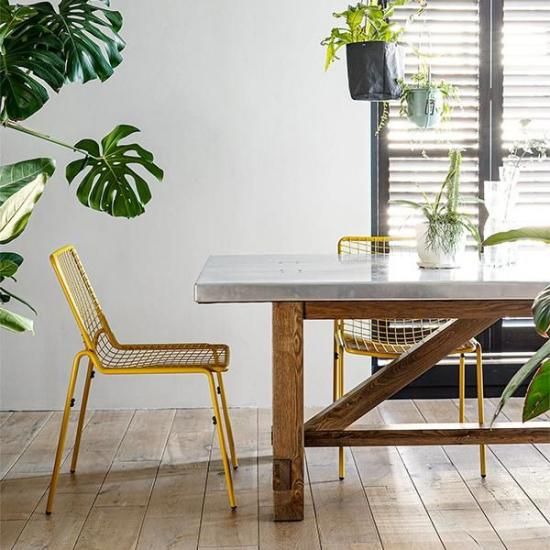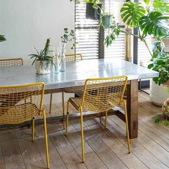 シルバーのメタリックな輝きをまとうアルミ素材「エアロ」を天板に使用したダイニングテーブルです。飛行機のボディをイメージして開発されたエアロは、光沢のある金属感を美しく主張し、その存在感はインテリアとして空間を引き締めます。