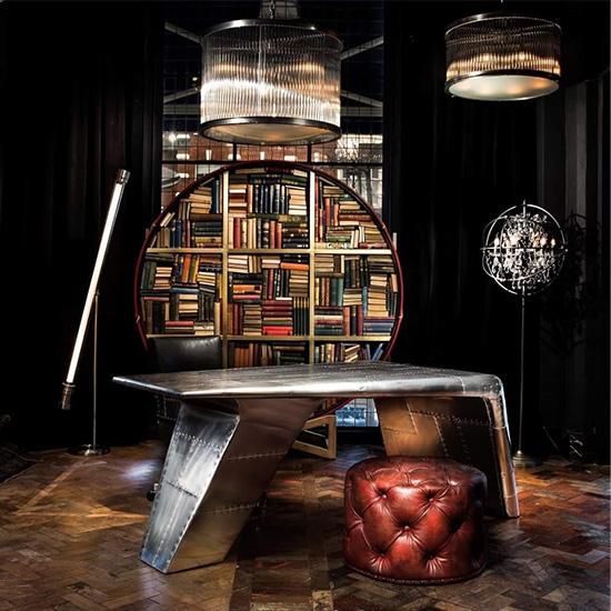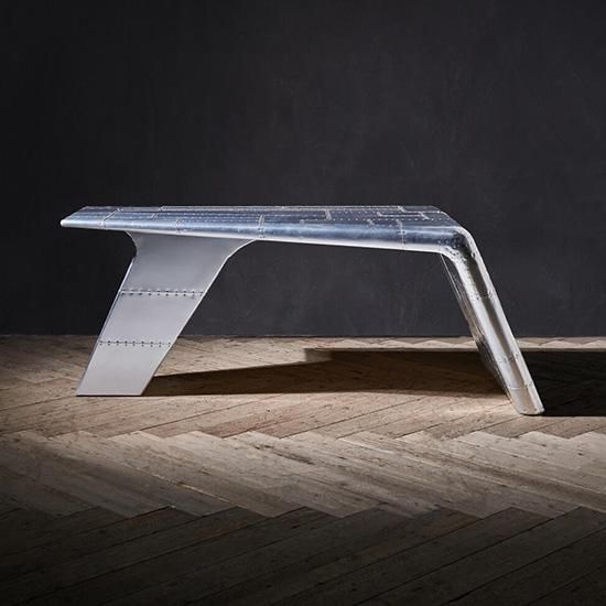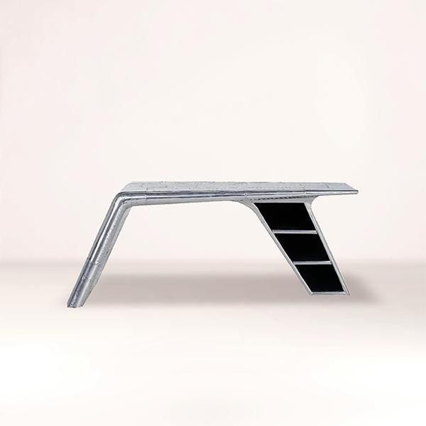 航空機のエンジンにインスパイアされたカウリングデスク。その大胆な曲線はスピットファイアに覆われています。丹念に手作りされたシグネチャーフィニッシュ。歴史的なブリティッシュスピッチファイア戦闘機のマルチリベットで留められたパネルを模倣し、アルミニウムの各部分は、手で付けられた釘で固定され、5段階の仕上げプロセスを経て、使い込まれた雰囲気を醸し出したスペースでデスクワークに集中できます。