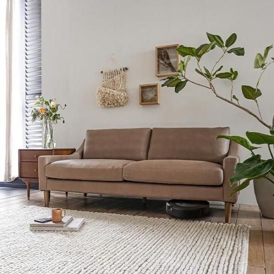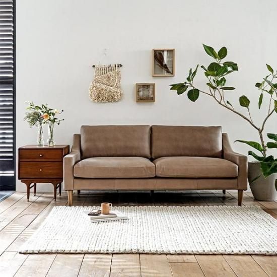 デザインだけではなく革の質感や風合いまでにこだわったレザーソファ。 HALOの商品の中でもこちらのソファは1.4〜1.6mmの厚革を使用したシリーズ。 革を厚くすることにより、比較的伸びにくく、丸い座りジワが付きにくいのが特徴です。 HALO独自の手法によるシルクのような肌触りとマットに仕上げられたカラーが特徴です。レザーは TAUPEとその他3種類からお選びいただけます。