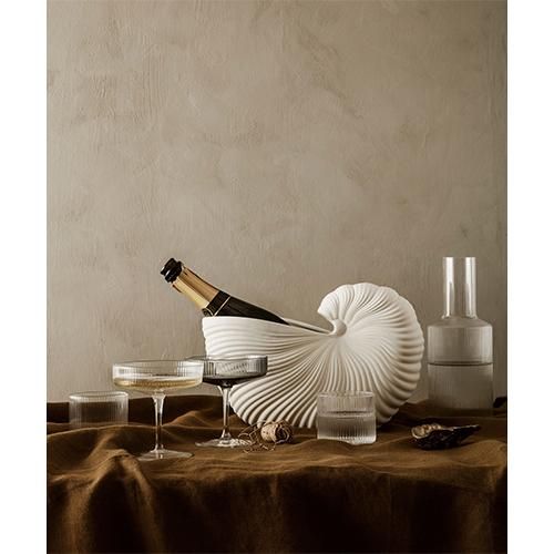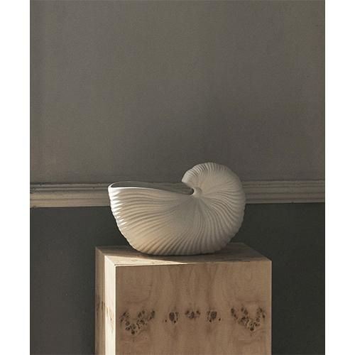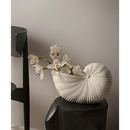 オウムガイの殻のような形をした独特なデザインのベース。マットな質感で、まるで石膏像のようなアートな表情を纏っています。 お花やグリーンを活けるだけでなく、鉢の代わりに使用したり、何も入れずにそのままオブジェとして飾っても素敵。ダイニングシーンではなんとワインクーラーとしてもお使い頂けます。
