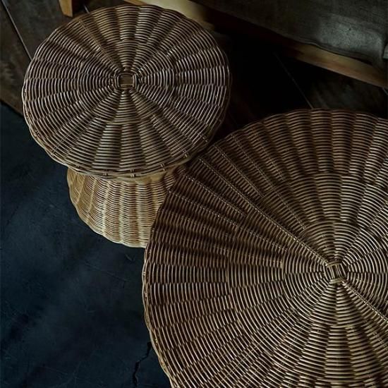 職人により手編みで作られている天然ラタンのコーヒーテーブル。 程よく使い勝手のいいφ60cmのサイズで、軽くて動かしやすいため、用途に応じてソファの前に置いたり、サイドに置いたりと活用できます。