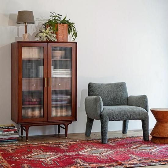 柔らかく丸いフォルムが特徴的なアームチェアは、どんな空間にもぴったりフィットする可愛らしさを持っています。低めのデザインとロータイプのバックレストにより、空間の大小や用途を問わず、幅広いインテリアスタイルに調和します。