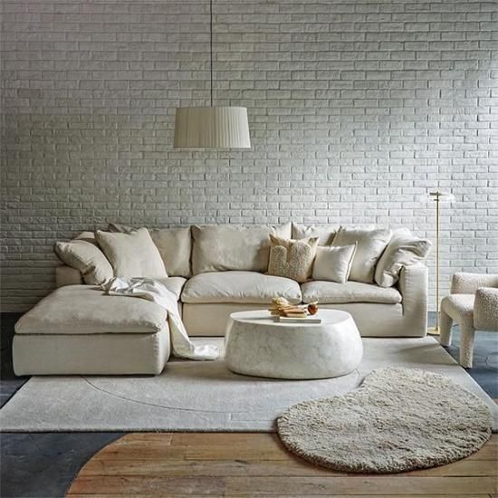 天然素材のファブリックとフェザー・ダウンを使用したクッションにより、まるで雲の上にいるかのような座り心地を体験できるソファーです。