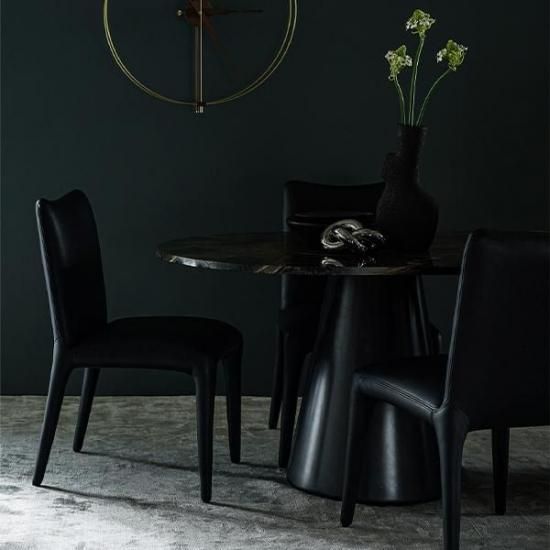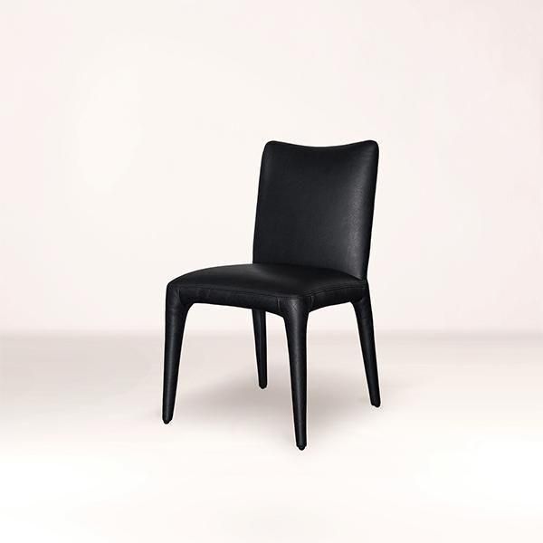 背面から脚部まで全てレザーで包まれたダイニングチェア。背面は体にフィットするように曲線を描いており、ゆったりと寄りかかることができます。革の質感の良さが上質な空間を演出します。シンプルなフォルムは、さまざまなシーンにコーディネートしていただけます。