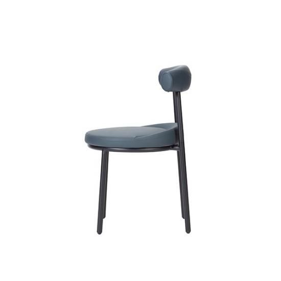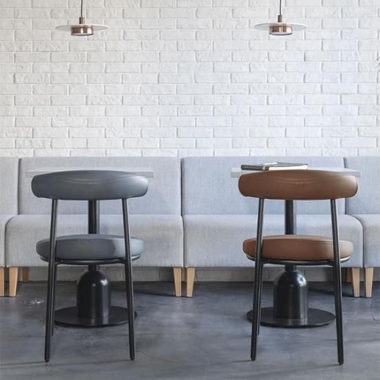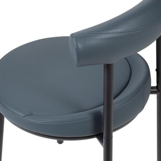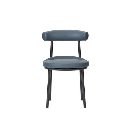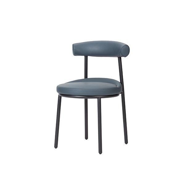 コンパクトに収まるサイズ感ながらも、ぽってりとしたデザインがトレンド感を感じさせるチェア。 張地にはビニールレザーを使用しており、一見すると本革のような上質な見た目でありながら、耐水性が高く汚れにくいので気軽にお使い頂けます。 ご家庭のダイニングチェアとしてはもちろん、オフィスのカフェスペースやミーティングスペースにもおすすめです。