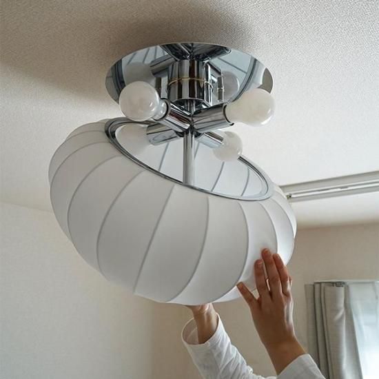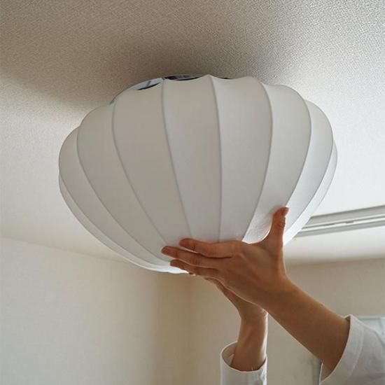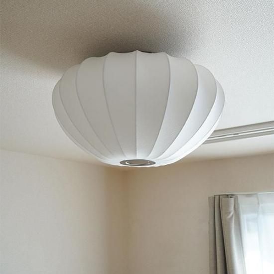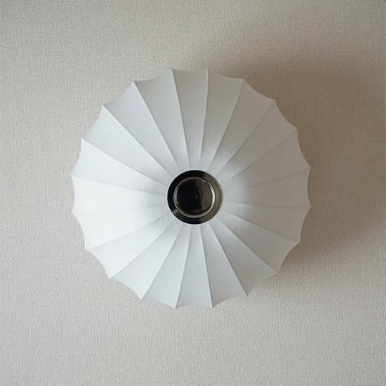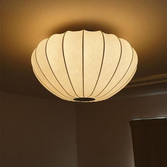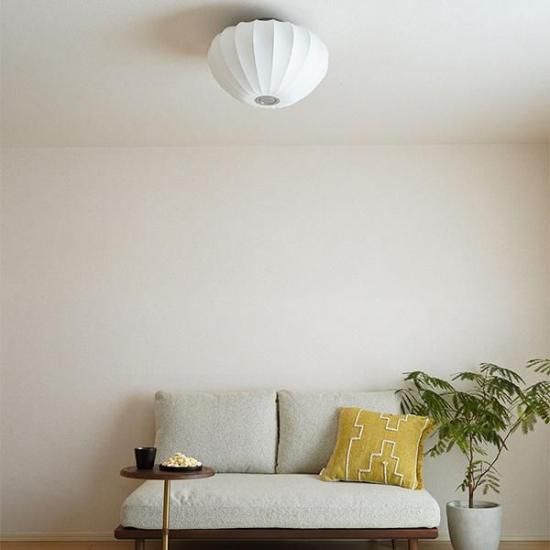 シェードの表面に浮かび上がる骨組みによるリブ(溝)のデザインは、提灯を思わせる和の雰囲気を纏いながらもどこかミニマルな印象。 ミッドセンチュリーモダンとともに近年注目される、北欧デザインと和の融合からなる「ジャパンディスタイル」のエッセンスを程よく取り入れたデザインに仕上げています。 天井に取り付けるシーリング仕様なので、コンパクトな空間でも圧迫感なくコーディネートできます。