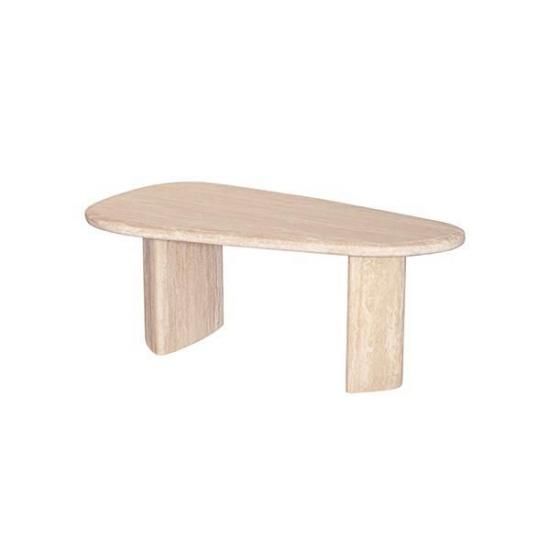 洗練されたデザインと高級感を兼ね備えたトラバーチン製のコーヒーテーブル。自然の美しさを感じる印象的な丸みのある変形天板は、大きさを感じさせず、さまざまなインテリアに調和し、エレガントな雰囲気を演出します。