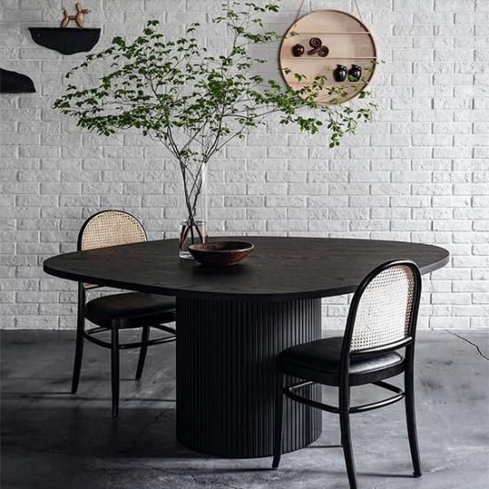 雫をイメージした個性的な形の天板を持つテーブルです。 どこに座っても視線が被らず、片方で作業している間に、もう片方で別のことをすることもできます。