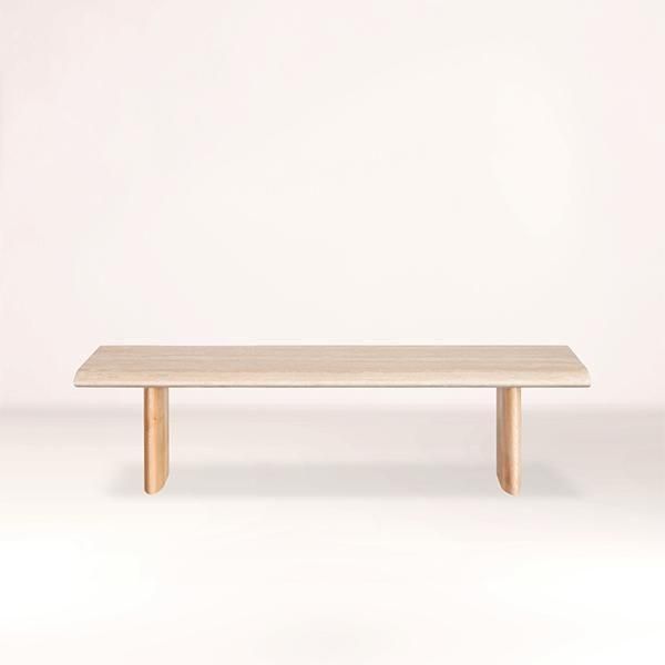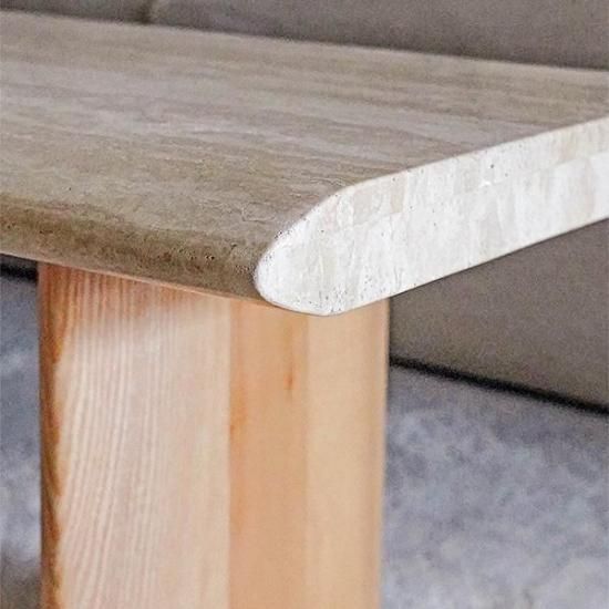 トラバーチン(Travertine)とよばれる天然石の風合いと木の温もりが調和した美しいコーヒーテーブル。自然が生み出した独自の模様と質感が、唯一無二の存在感を放っています。シックなインテリアからナチュラルスタイルまで、あらゆるテイストの空間に美しく馴染むデザインが魅力です。