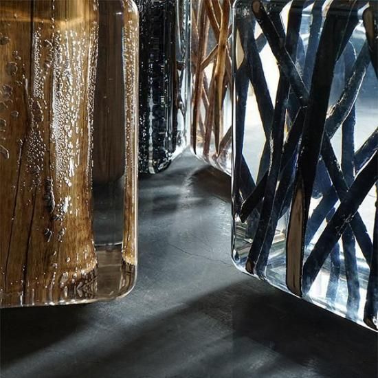 ウッドを氷づけにしたかのようなアーティスティックなテーブル。優れた透明性を持つアクリルを使用することで、透き通るような美しさを実現しています。アクリルの中に閉じ込めているのは本物の流木。自然のマテリアルをモダンインテリアへ作り変える、ブランドのの世界観が表現されています。流木の形状や色味等は一点一点異なり、ひとつとして同じものはない美術品のようなプロダクトです。